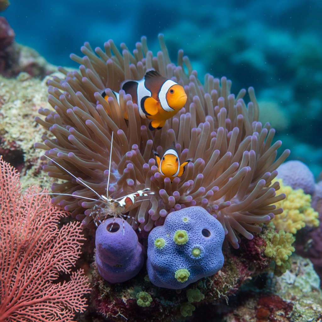 Investigate symbiotic relationships through direct observation, including cleaner shrimp stations, anemone-crab partnerships, and coral-algae associations. Students develop understanding of complex ecological interactions that maintain ecosystem stability while learning to document these relationships through detailed field notes and underwater photography.