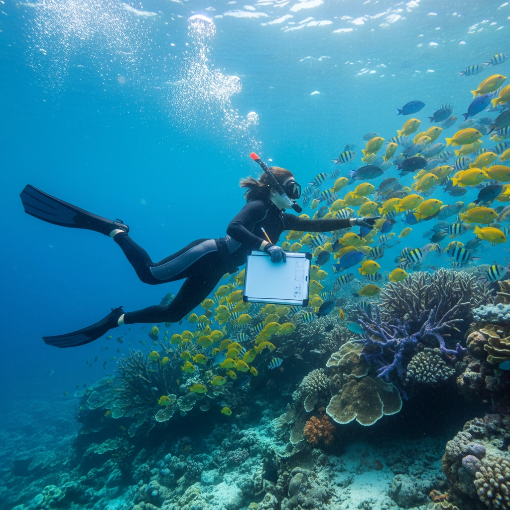Advanced students conduct transect surveys, swimming predetermined routes while documenting fish communities along measured distances. This methodology teaches students to collect quantitative data that can be compared across different reef zones and time periods, developing understanding of population dynamics and ecosystem relationships.