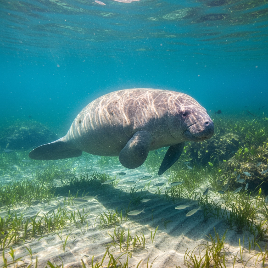 Manatees play a crucial role as ecosystem engineers, creating and maintaining channels through aquatic vegetation as they move between feeding and resting areas. Their grazing behavior influences plant community structure and provides nutrients to aquatic ecosystems through waste production. Document these ecological interactions to reinforce food web concepts and the interconnected nature of ecosystem components.